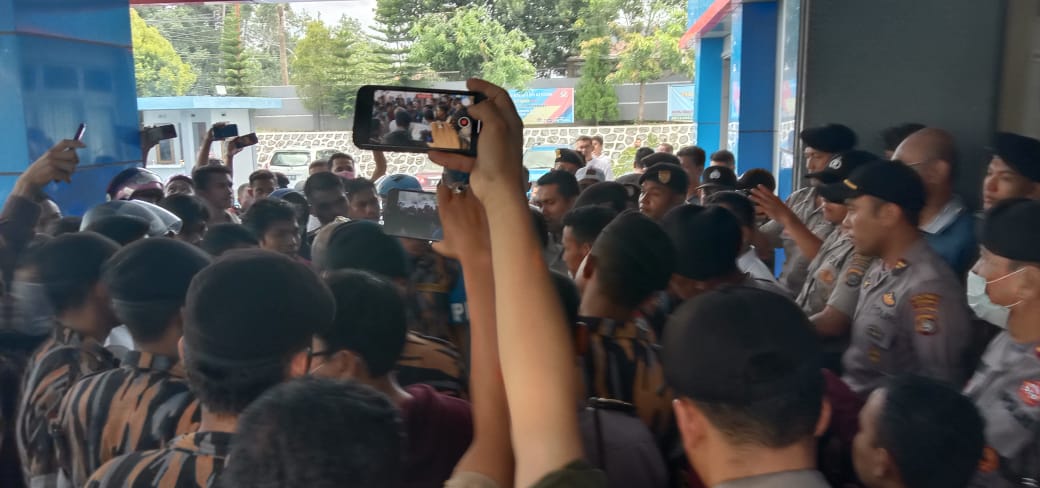 Puluhan massa aksi yang tergabung dalam Pembela Kesatuan Tanah Air Indonesia Bersatu (Pekat-IB) terlibat aksi saling dorong dan pukul dengan aparat kepolisian dan petugas pengamanan internal Kantor Imigrasi Kendari.