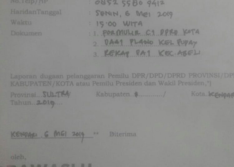 Dokumen yang dilampirkan sebagai bukti dugaan kecurangan yakni formulir C1 DPRD Kota Kendari, DAA1 plano Kelurahan Puday dan Rekap DA1 Kecamatan Abeli.