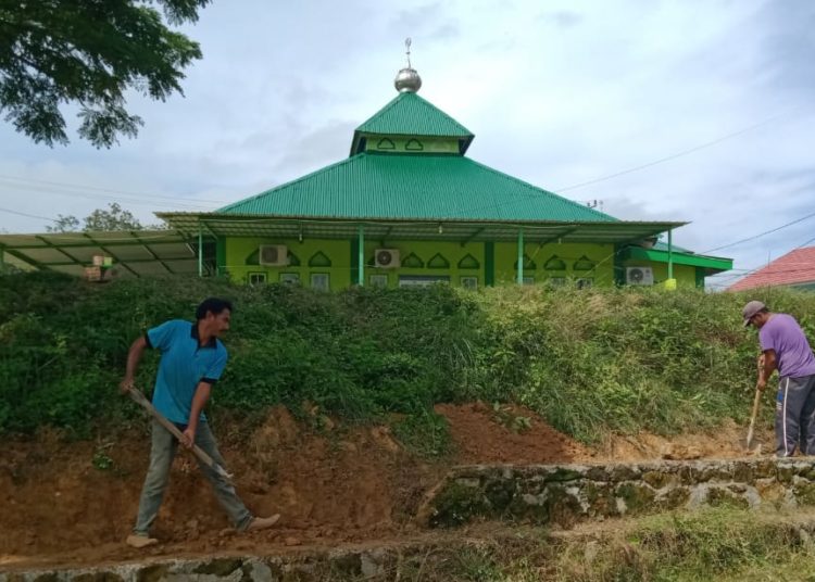 Talud masjid yang dibangun itu setinggi hampir 3 meter dengan panjang bentangan mencapai 35 meter.