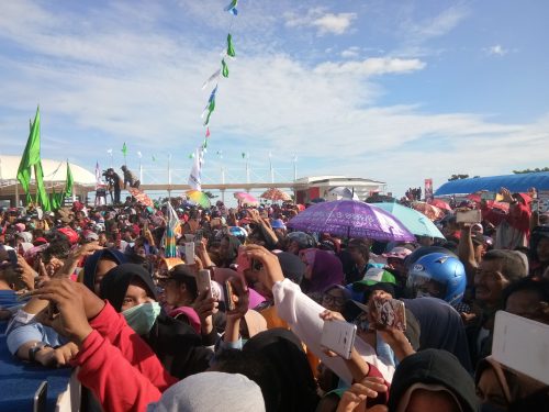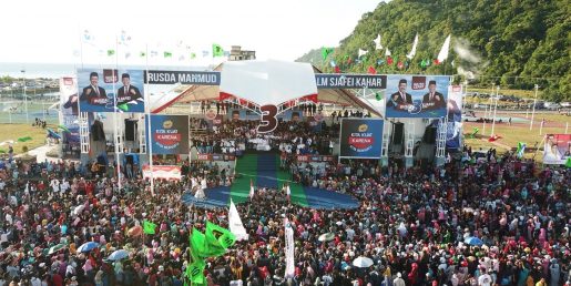 TenggaraNews.com, KOLAKA UTARA – Teriknya mentari tak menyurutkan antusiasme ribuan masyarakat yang memadati alun-alun Lasusua, Kabupaten Kolaka Utara (Kolut) dalam rangkaian kampanye akbar pasangan calon (Paslon) Gubernur dan Wakil Gubernur Sultra nomor urut 3, Rusda Mahmud-Sjafei Kahar, Rabu 9 Mei 2018.