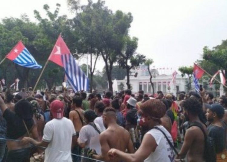 Seperti diketahui, puluhan mahasiswa Papua kembali mengibarkan Bendera Bintang Kejora saat berunjuk rasa menuntut referendum di depan Istana Merdeka, Jakarta, Rabu (28/8/2019). Mereka juga meminta Presiden Jokowi agar menemui massa.