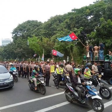 Belum diketahui, mengapa aparat tidak bertindak menurunkan bendera Bintang Kejora yang dikibarkan aksi massa itu.