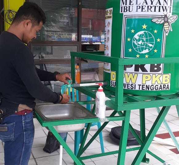 Seperti yang dilakukab oleh Dewan Pengurus Wilayah (DPW) Partai Kebangkitan Bangsa (PKB) Sultra, dengan menempatkan tangki dan sabun pencuci tangan di beberapa fasilitas umum di Kota Kendari.
