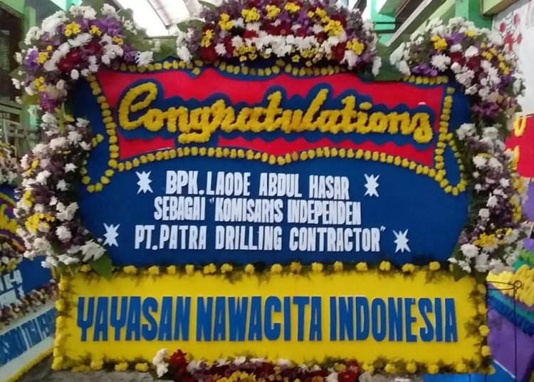 TenggaraNews.com, MUNA – Deretan papan bunga sebagai ucapan selamat sudah terpajang rapi di wisma antara lantai lima jalan Medan Merdeka Selatan nomor 17 Jakarta Pusat. Karangan bunga tersebut diberikan usai dilantiknya La ode Abdul Hasar sebagai Komisaris PT. Pertamina Patra Drilling Contractor yang merupakan anak Perusahaan dari PT. Pertamina, perusahaan Badan Usaha Milik Negara (BUMN) yang bergerak di bidang pengeboran minyak.