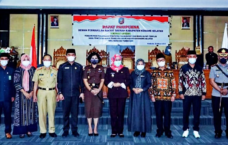Keputusan DPRD Konsel dituangkan dengan Nomor 04/DPRD/2021, tentang pengumuman pengesahan penetapan Calon Bupati dan Calon Wakil Bupati terpilih penetapan KPU Konsel.