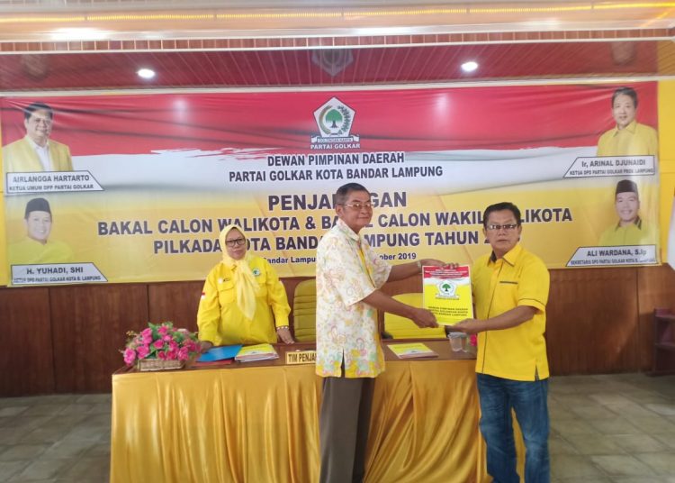 TenggaraNews.com, BANDAR LAMPUNG – Hari pertama penjaringan bakal calon (Balon) Wali Kota dan Wakil Wali Kota Bandar Lampung, dua Balon wali kota mendaftar ke Panitia Penjaringan DPD II Partai Golkar Bandarlampung, Senin 7 Oktober 2019.