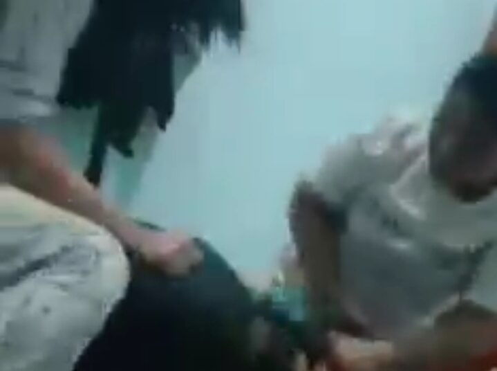 Dalam video berdurasi tiga puluh detik, nampak seorang wanita dianiaya hingga nyaris ditelanjangi oleh dua orang wanita lainnya.