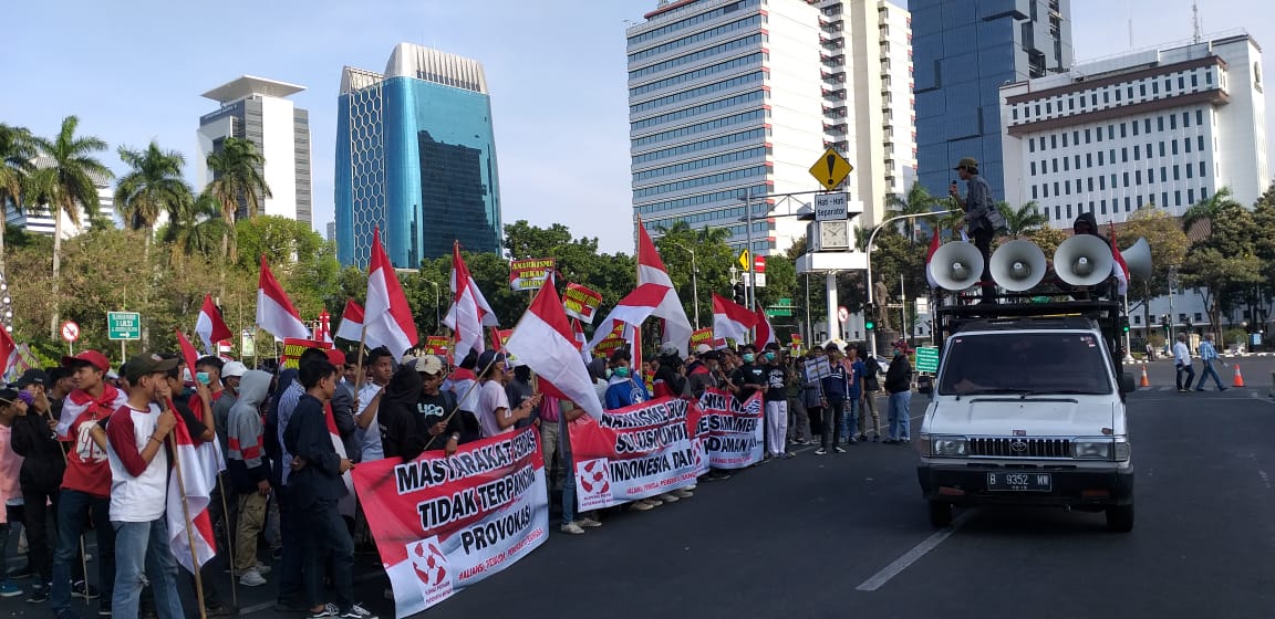 Hal ini disampaikan oleh sekelompok mahasiswa dalam aksi unjuk rasa yang tergabung dalam Aliansi Pemuda Pemersatu Bangsa (APPB), saat melakukan aksi unjuk rasa secara damai di depan Patung Kuda, Kawasan Monumen Nasional, Jakarta, Senin 30 September 2019.