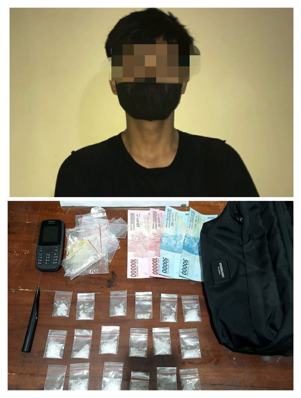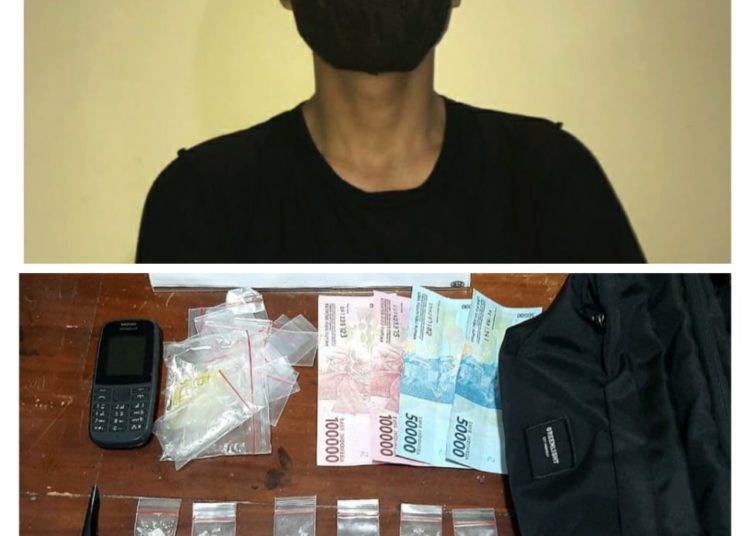 “Penangkapan berlangsung pada Senin,19 April 2021 kemarin sekira pukul 15.35 Wita. Adapun barang bukti (BB) yang ditemukan sebanyak 18 saset Narkotika golongan 1 jenis sabu seberat 16,8 gram,” ungkap Kompol Dolfi Kumaseh, Selasa 20 April 2021.