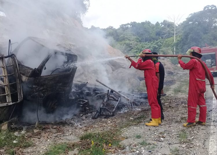 TenggaraNews.com, KOLAKA – Mobil truk dengan nomor polisi DD 8415 ML, milik CV Petro Lancar Sakti, terbakar di Kilometer 20, jalur trans Sulawesi, tepatnya di Kelurahan Sabilambo, Kabupaten Kolaka. Peristiwa tersebut terjadi sekira pukul 11.00 Wita, Sabtu (5/10/2019).