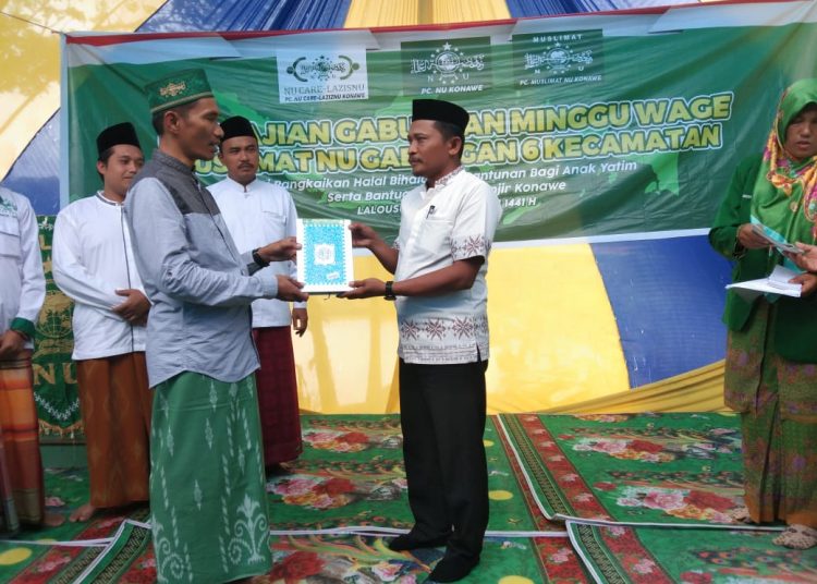 Penyerahan paket sembako dan bantuan lainnya itu dilakukan ketua tim Nahdlatul Ulama (NU) Peduli Sulawesi Tenggara, Milwan Lukman, S.Ag bertepatan dengan acara pengajian gabungan minggu Warga Muslimat Nadhlatul Ulama enam kecamatan se kabupaten Konawe yang dipusatkan di masjid At Taqwa Desa Lalousu, Kecamatan Wanggeduku, Konawe. Keenam kecamatan dimaksud, yakni Kecamatan Wanggeduku, Wanggeduku Barat, Pondidaha, Meluhu, Amonggedo, Wawotobi dan Anggotoa.