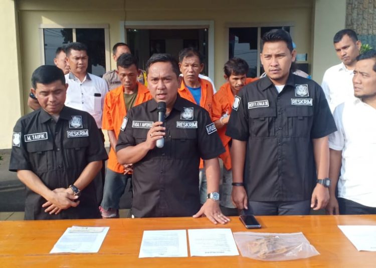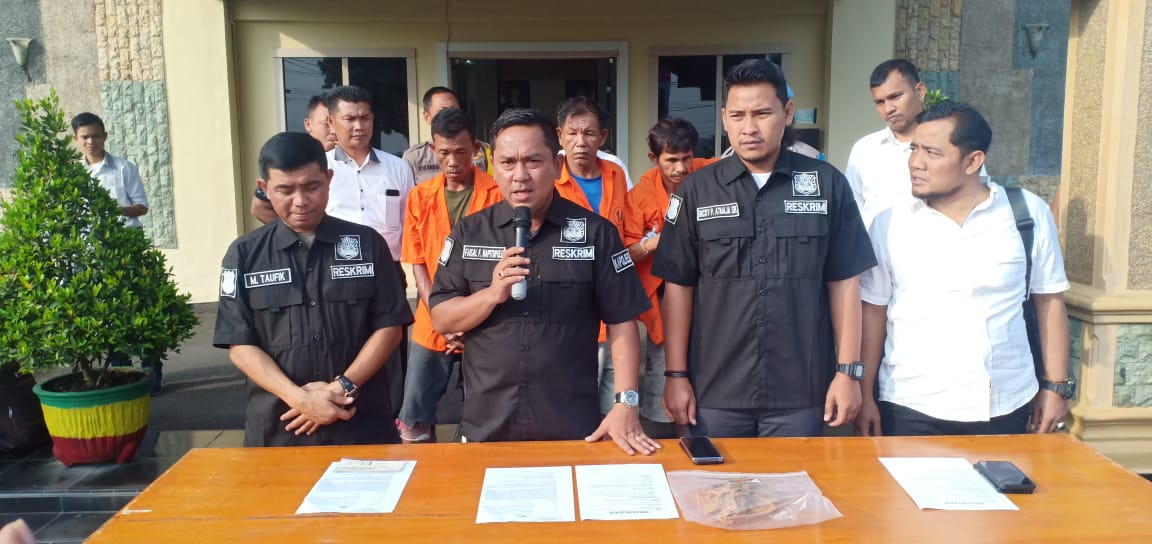 “Modus para pelaku melakukan perampokan yakni berpura-pura menjadi penumpang. Dua orang pelaku berperan menjadi penumpang truk tangki, sementara 2 orang lainnya mengikuti dari belakang dengan menggunakan mobil Avanza,” ungkap Kapolres Asahan, AKBP Faisal F. Napitupulu, S.I.K., M.H. di dampingi Waka Polres, Kompol M. Taufik, Kabag Ops Kompol Marludin dan Kasat Reskrim AKP Ricky Pripurna Atmaja saat menggelar temu pers di halaman Polres Asahan, Senin 7 Oktober 2019.