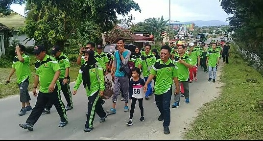 “Dalam kegiatan jalan sehat pada hari ini, yang mana pada hari ini merupakan salah satu kegiatan olah raga dalam mewujudkan tingkat sehat jasmani dan rohani,” ujarnya.