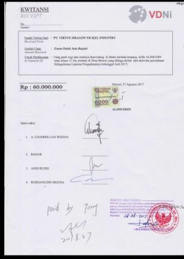 Setelah dicermati, ternyata kuitansi tersebut perihal pembayaran ganti rugi atas kerugian yang dialami Alimuddin, karena ikan dan udang di tambak miliknya mati, akibat aktivitas pihak VDNI.