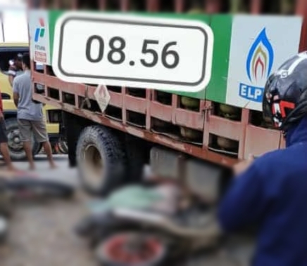Tabrakan antara pengendara motor dengan truk pengangkut gas di Desa Polua,Konawe.