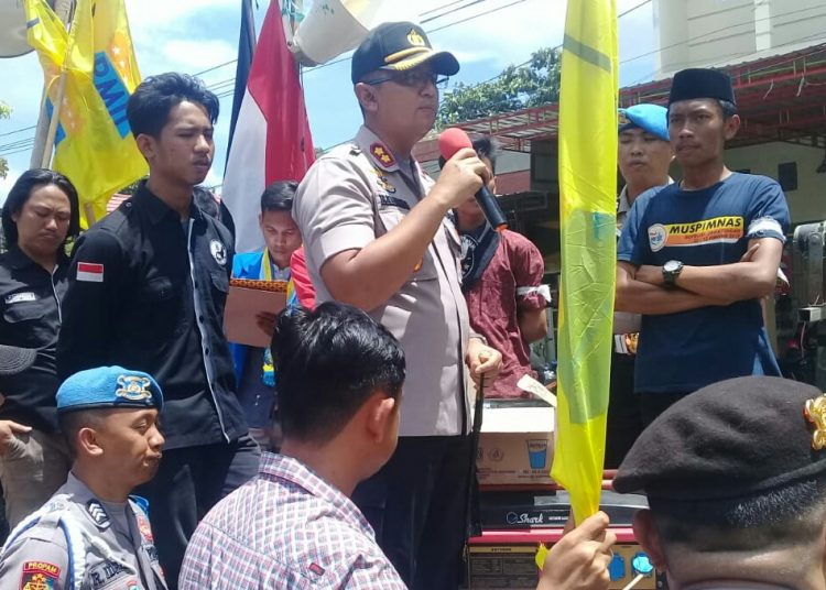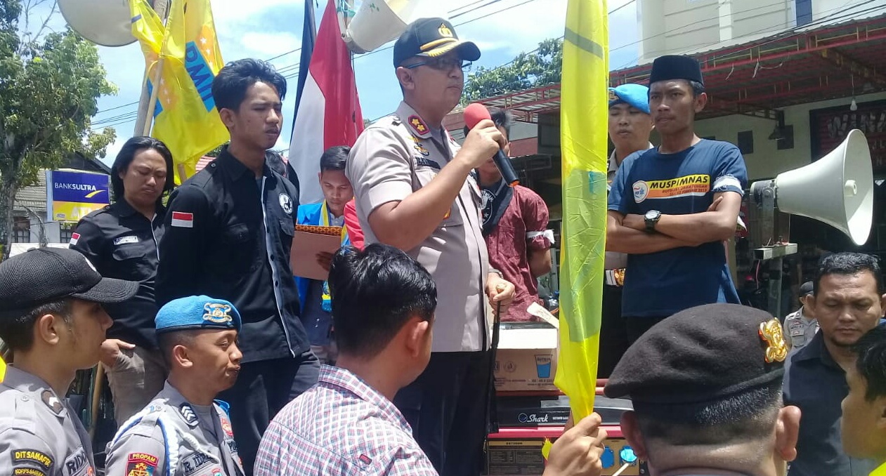 Di hadapan mahasiswa, Kapolres Kolaka, AKBP Bambang Satriawan menyampaikan turut berduka cita atas meninggalnya dua mahasiswa UHO.